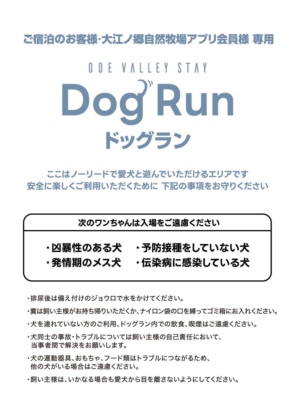 ドッグランは大江ノ郷アプリ会員様、宿泊の方限定でご利用いただけます。
